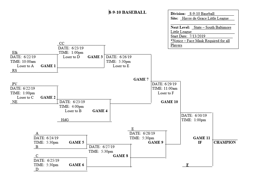 All games are played at Havre de Grace Little League